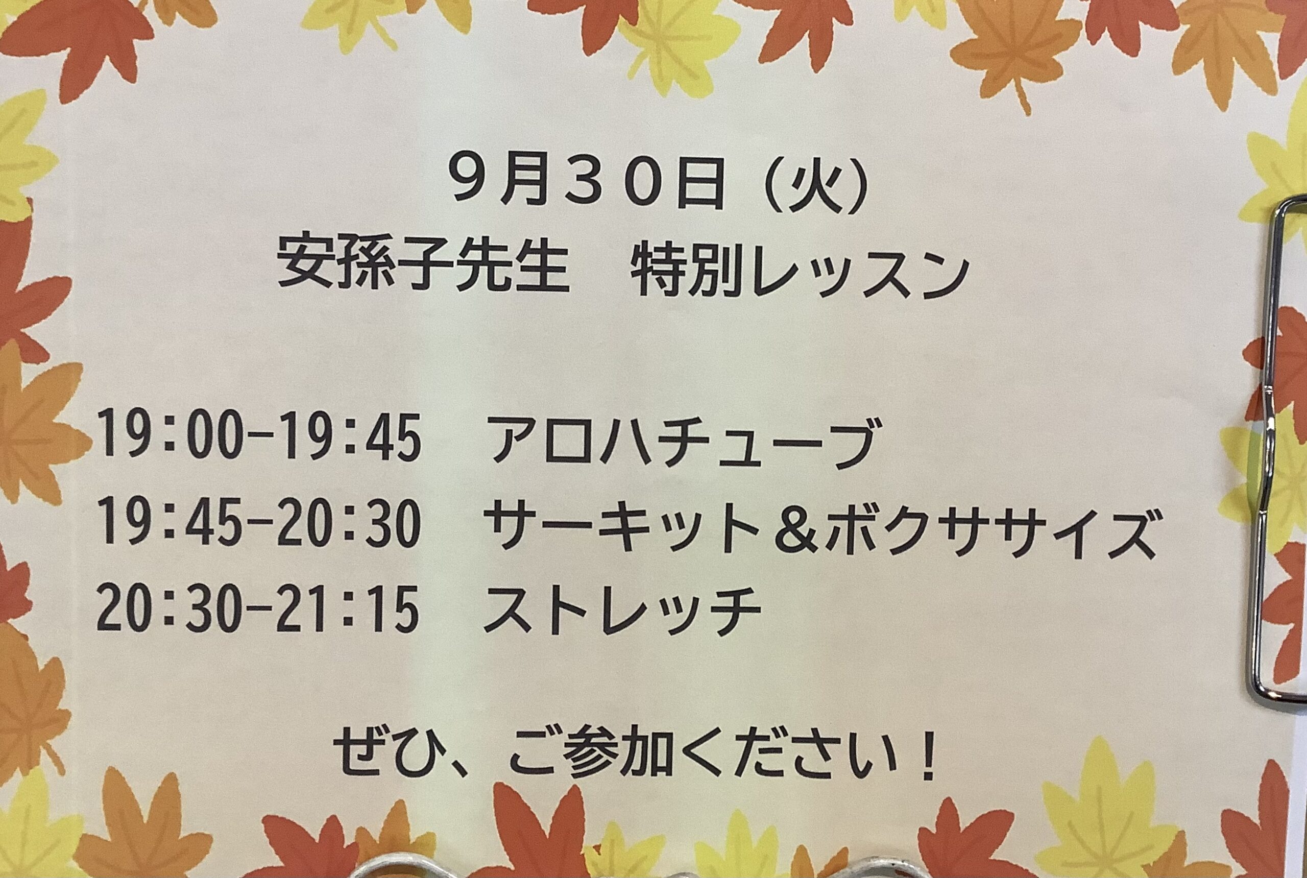 9/30(火)夜 安孫子先生の特別レッスン開催 2025.09.30 未分類 本日、大串先生が休講のため、 安孫子先生による特別レッスンが開催されることになりました。 急ではございますが、ご参加お待ちしております! 前嶋先生のレッスンのお知らせ 前の記事 10月特別レッスンのお知らせ(10/2更新) 次の記事