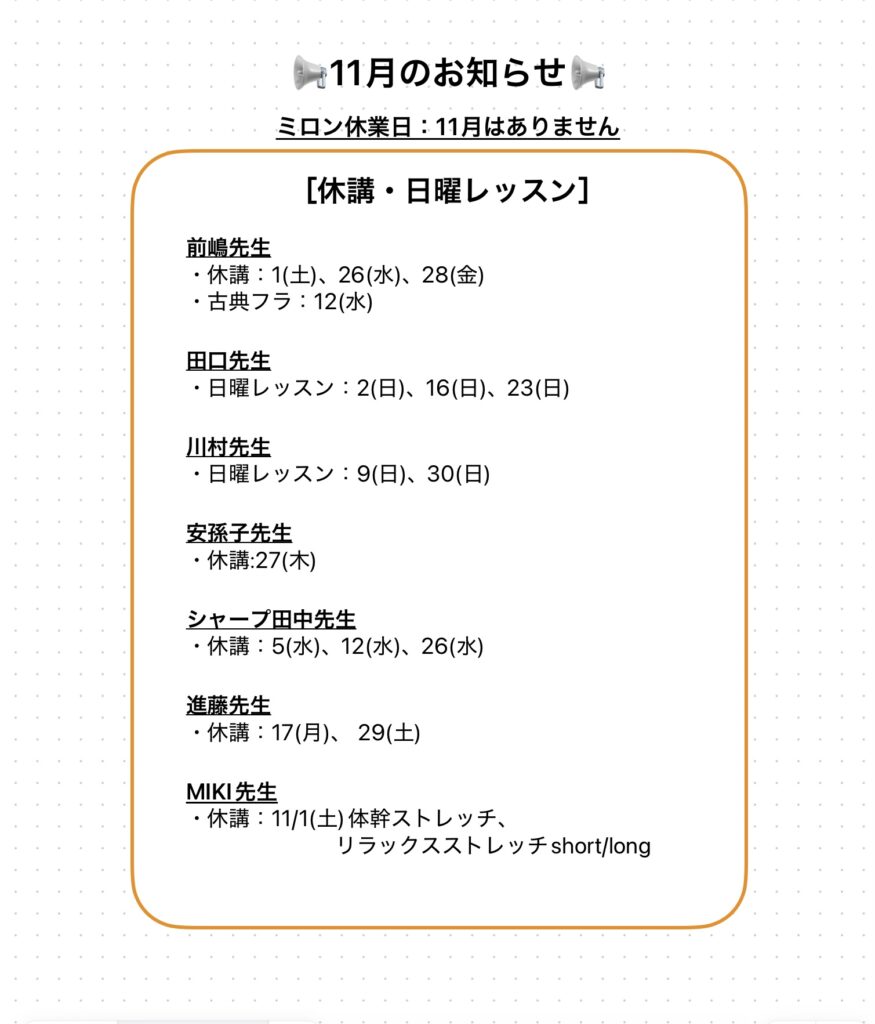シャープ田中先生のレッスンと鹿子先生の特別レッスンの変更